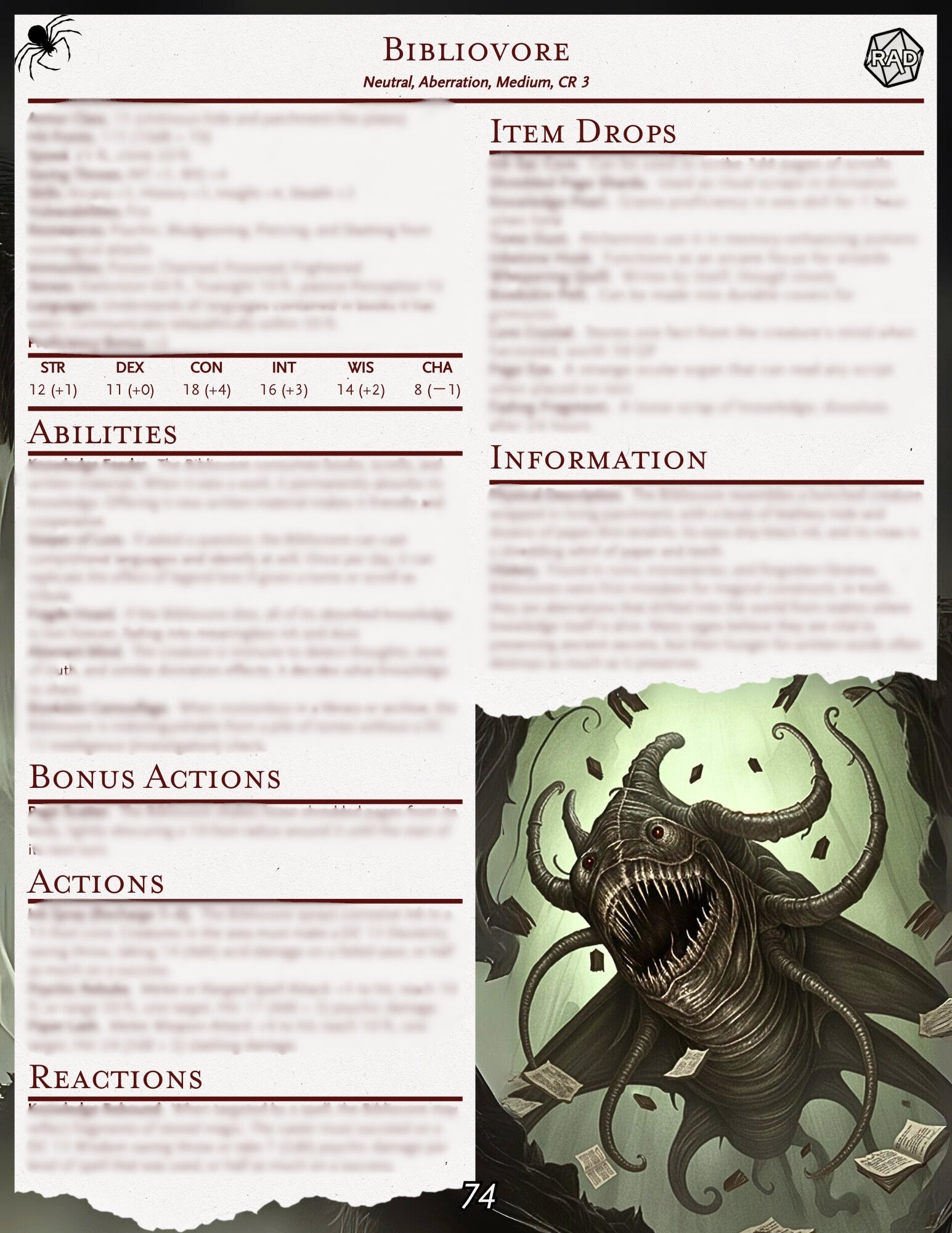 So whether you're looking to terrify your players, challenge their tactics, or simply want to add some fresh flavor to your world, Beyond the Bestiary will take your game to the next level. Are you ready to step beyond the known and into the unknown?